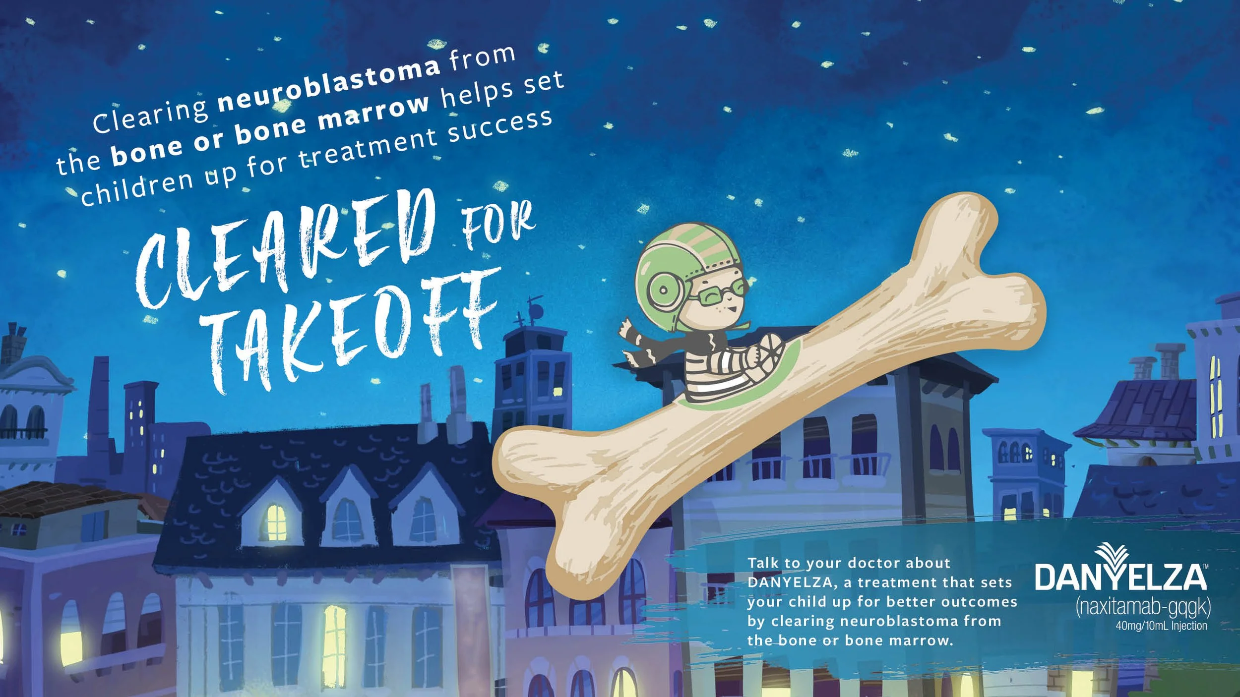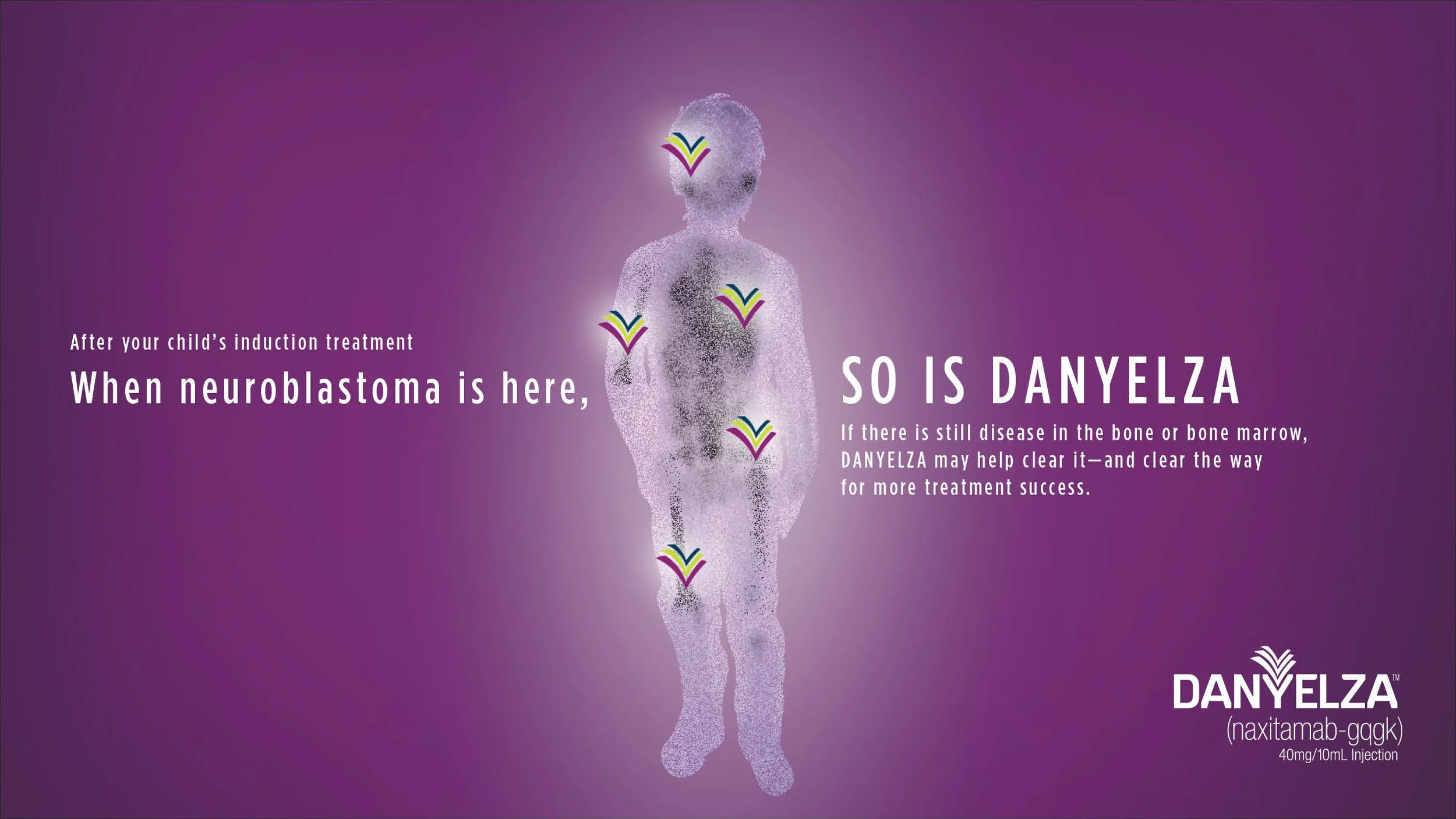 Danyelza is the first FDA-approved treatment for patients with relapsed or refractory high-risk neuroblastoma in the bone or bone marrow after a partial response, minor response, or stable disease to prior therapy. Below are several iterations for Danyelza’s new branded campaign.