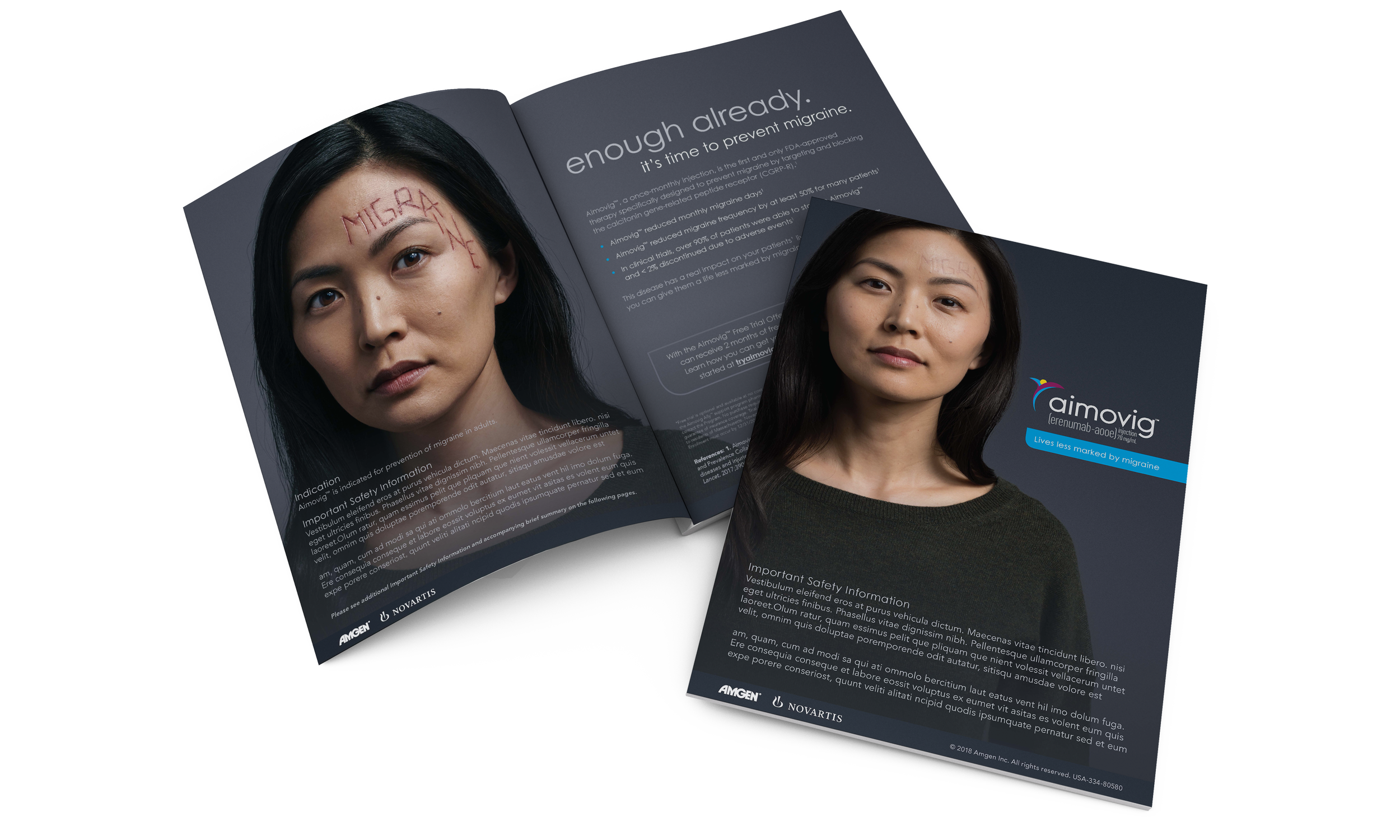 Aimovig was the first migraine preventative therapy to launch in market. This launch campaign, “enough already”, won “Best Launch Campaign” at the MM&M awards in 2019. “enough already” visually represents the thought that “if physicians were able to see a migraine, would they do something about it?”.